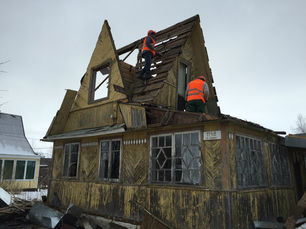 Демонтаж домов, бань, гаражей, перегородок, стен.